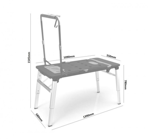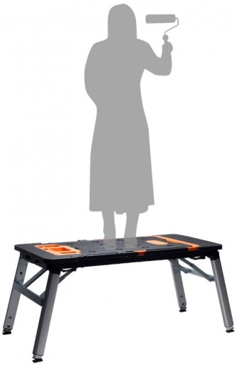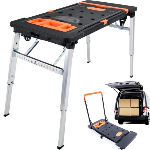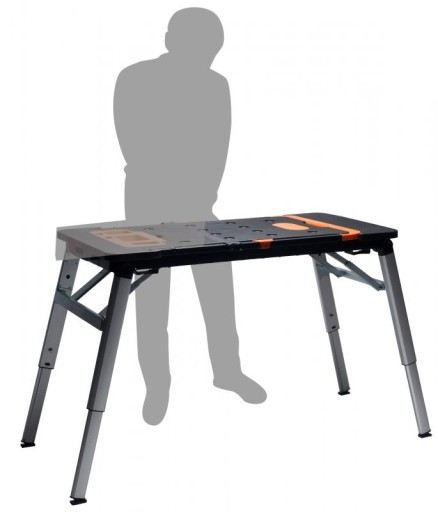 Posiada dużą powierzchnię roboczą dzięki której piłowanie i wiercenie jest prostsze. Z boku znajduję się wbudowane gniazdko do zasilania. Może być wykorzystywany jako stabilne rusztowanie lub podest roboczy. W zestawie znajdują się kółka, dzięki którym stół zamienia się w wózek. Znajdzie zastosowanie w magazynach, sklepach, warsztatach oraz wszędzie tam gdzie występuje konieczność transportowania różnego rodzaju towarów. Posiada także funkcję leżanki warsztatowej do użytku w warsztatach samochodowych, naprawczych, serwisach motoryzacyjnych a także wśród majsterkowiczów. Można go złożyć w kształt walizki łatwej do przechowywania i transportowania.
