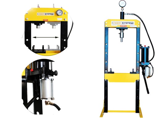 10 tonowa Prasa Hydrauliczna (pneumatyka, ruchomy tłok, regulowany stół)