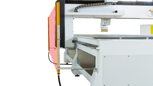 - Maszyna w standardzie wyposażona jest w profesjonalne ochronne bariery świetlne 4 klasy ochronnej.