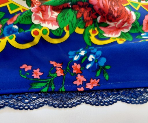 SPÓDNICA LUDOWA DAMSKA Z KORONKĄ NIEBIESKA