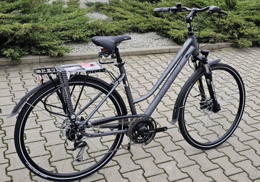 Jak coś jest do wszystkiego to jest do niczego. Z pewnością nie w tym przypadku. Gazela to doskonały kompan na długie jak i krótkie podróże. Posiada widelec amortyzowany SR Suntour NEX DJ oraz amortyzowaną sztycę, które zdecydowanie podnoszą poziom komfortu każdej przejażdżki. W Gazeli mamy do wykorzystania 27 przełożeń za sprawą napędu Shimano Alivio. Gwarantuje on płynną zmianę przełożeń oraz niezawodność. Nieważne jaka jest pogoda, bezpieczeństwa w czasie jazdy będą strzec hamulce tarczowe Shimano, podobnie jak oświetlenie, które zapewni doskonałą widoczność. Oświetli również drogę, jeśli trzeba będzie jechać po zmroku. Gazelę wyposażyliśmy w błotniki oraz osłonę napędu, które będą niezwykle przydatne w czasie jazdy przy gorszej pogodzie. W seryjnej specyfikacji warty podkreślenia jest regulowany wspornik kierownicy, który pozwoli w prosty sposób dobrać wygodną pozycję.