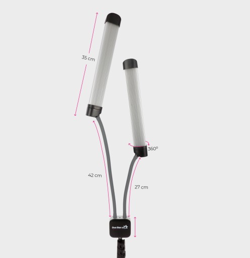 # Głowice są osadzone na giętkich ramionach, które obracają się o 360 stopni, dając nieograniczone możliwości ustawienia lampy. Takie rozwiązanie gwarantuje perfekcyjne zdjęcia Twoich stylizacji!
