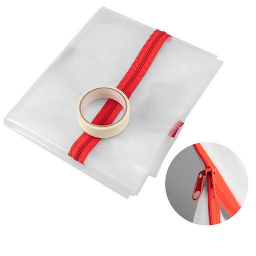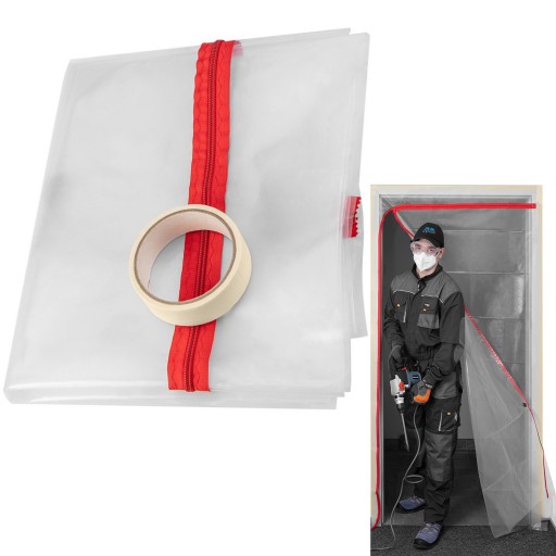 Kurtyna, osłona przeciwpyłowa z zamkiem "L" PE 49-800 NEO to niezbędny podczas remontów produkt, zabezpieczający pomieszczenia przed kurzem i zapyleniem. Kurtyna przeznaczona jest do zaklejania otworów drzwiowych. Wyposażona w dwustronną taśmę klejącą jest łatwa w montażu. Charakteryzuje się wymiarami 1230 x 2240 mm. Wykonana została z bezbarwnej, przezroczystej folii PE o podwyższonej gramaturze. Część otwierana ma kształt odwróconej litery ,,L” za pomocą wszytego, wygodnego zamka błyskawicznego.