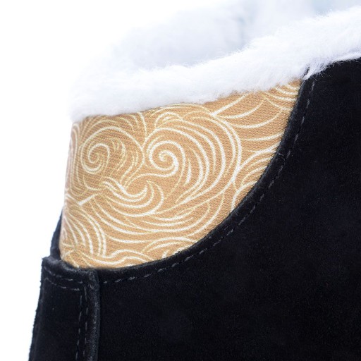 Wnętrze buta wyścielone jest bardzo miękkim i delikatnym futerkiem.