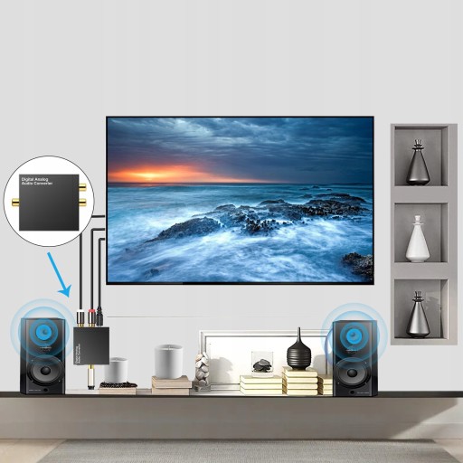 - konwersja sygnału: Sygnał koncentryczny Coaxial i Toslink na analogowe audio L / R