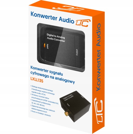 Konwerter sygnału cyfrowego na analogowy marki LTC jest przeznaczony do równoczesnej konwersji analogowego sygnału audio z wejścia L / R do wyjścia optycznego S / PDIF i Toslink.