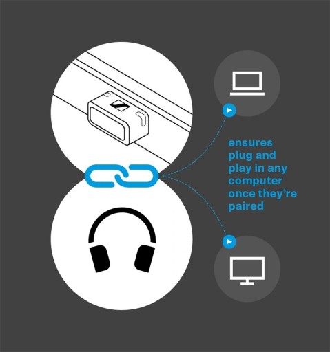 Wystarczy podłączyć dongle i sparować słuchawki. Nie ma skomplikowanej instalacji ani sterownika do zainstalowania. Możesz nawet podłączyć adapter do innego komputera, a słuchawki nadal będą sparowane.