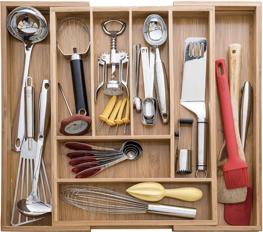 - ELEGANCJA W SZUFLADZIE - organizer jest bardzo elegancki. Naturalny kolor drewna sprawia, że będzie pasować do każdej kuchni. Wytrzymały materiał zapewnia funkcjonalność i estetyczny wygląd przez wiele lat.