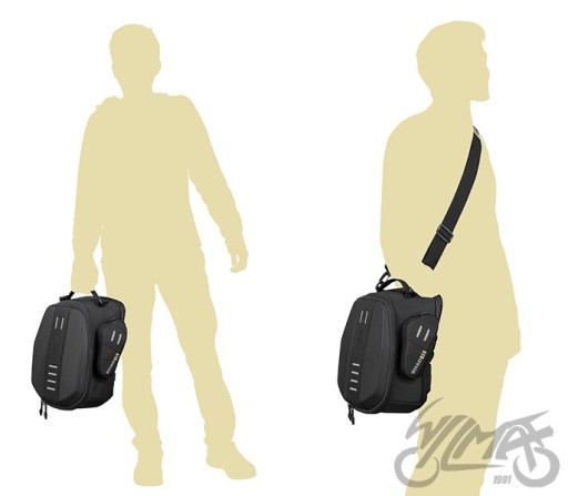 Mocowanie Click System może być umieszczone w jednej z dwóch pozycji lokując torbę bardziej z przodu lub z tyłu, w zależności od konfiguracji motocykla i pozycji kierowcy. Torba wymaga sprzedawanego osobno mocowania Click System przeznaczonego do danego modelu motocykla.