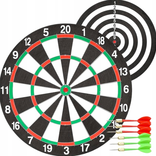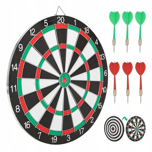 DWUSTRONNA TARCZA ŚREDNICA 42 CM DO DARTA + 6 RZUTEK