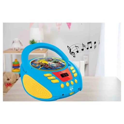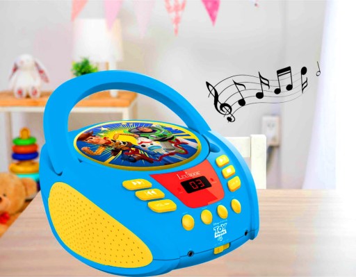 Przenośny odtwarzacz CD dla wszystkich małych miłośników muzyki. Podłącz mikrofon i ciesz się doskonałym pokazem śpiewu. Możliwość połączenia z innymi urządzeniami zewnętrznymi dla większego wyboru muzyki. Ruszaj z twoimi ulubionymi postaciami!