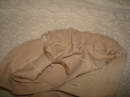 - SPODNIE GARNITUROWE BEŻOWE ELEGANCKIE TYPU SLIM W PASIE GUMKA Z GUZICZKAMI DO REGULACJI OBWODU
