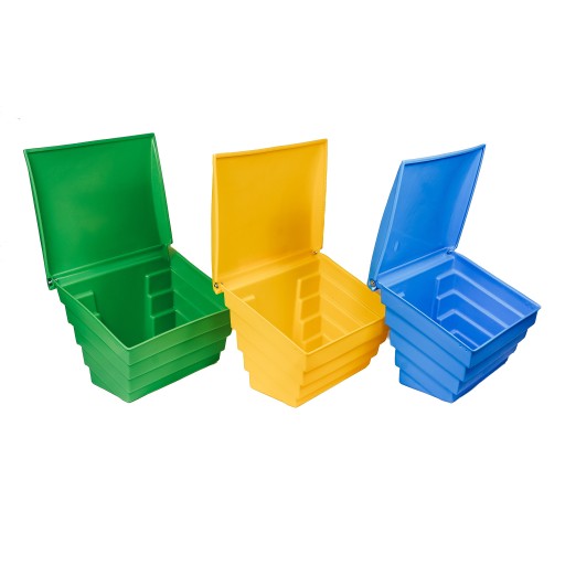 Oferowane przez nas pojemniki na piasek i sól firmy Marseplast pomagają w zwalczaniu oblodzenia na drogach i chodnikach. Pojemniki wykonane są z wysokiej jakości polietylenu przez co są odporne na szkodliwe działanie warunków atmosferycznych. Można magazynować w nich inne środki do posypywania ulic i chodników. Dzięki swojej trwałości służą przez wiele lat. Estetyczne wykonanie pojemnika sprawia, że można go umieścić w dowolnym miejscu. Pojemniki (na piasek, sól i inne) są dostępne w trzech wielkościach 70L, 150L, 250L,.Wygodne w magazynowaniu oraz przystosowane do transportu za pomocą wózka widłowego.