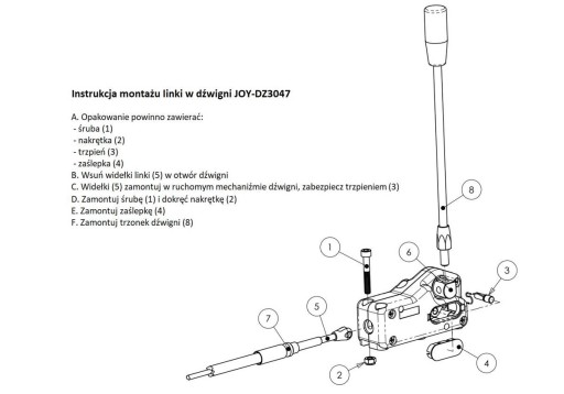 Dźwignia 3047 do sterowania rozdzielaczem hydraulicznym (na linki. widełki)