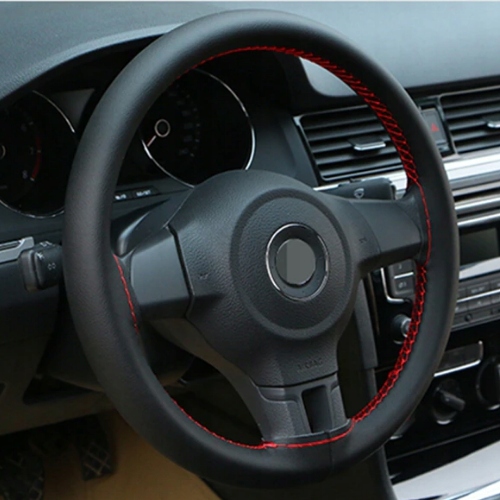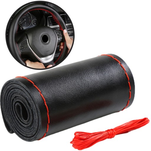 POKROWIEC NA KIEROWNICE NAKŁADKA SKÓRA DO OBSZYCIA Z CZERWONĄ NICIĄ
