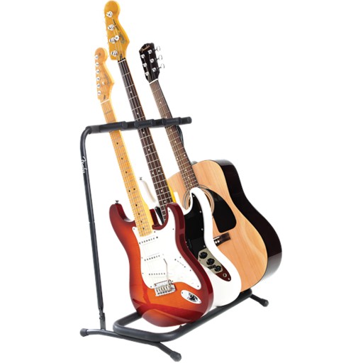 Stabilny statyw z przeznaczeniem do przechowywania nawet 3 gitar.