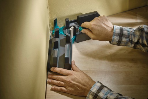- automatyczne odwzorowywanie kątów pomieszczeń i wyznaczanie prawidłowych kątów cięcia piłą ręczną dzięki wbudowanym bolcom do prowadzenia brzeszczotu piły (cięcia ukośne)