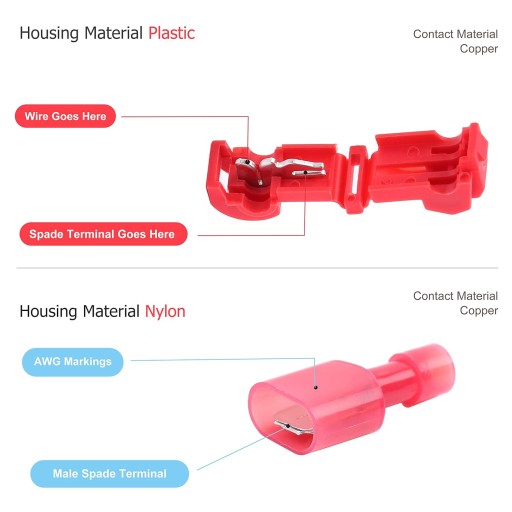 Czerwony | 22-18 Gauge - Zakres przewodów (0,5-1,0 mm²).