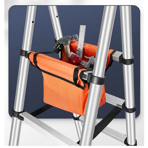 Ta składana drabina teleskopowa jest wyposażona w pasek do przechowywania i uchwytu do przenoszenia, co ułatwia transport i oszczędza miejsce. Naszą składaną drabinką można być w walizce, za drzwiami lub w innym miejscu w domu/pracy.
