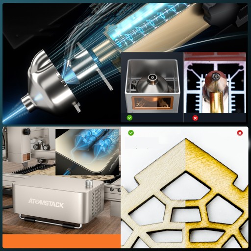 【 Nowo ulepszona, samoczynnie odtwarzająca 32-bitowa płyta główna Atomstack 】 Wbudowana 256-bitowa skala kolorów zapewnia pełny efekt grawerowania i efekt kontrastu. Teraz Twoje projekty nie są już tylko w kolorze czarnym!