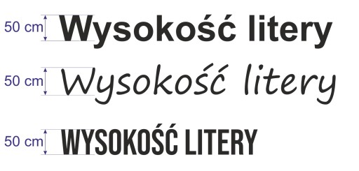Zamawiając napis składający się z małych i dużych liter, wysokość dotyczy tylko dużej litery.