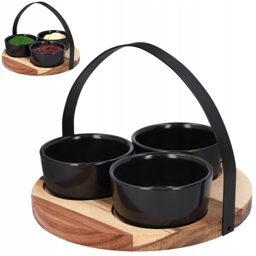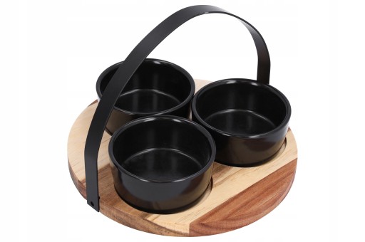 - Kolor: Czarne miseczki, naturalny kolor drewna akacjowego