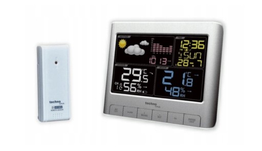 Stacja pogodowa bezprzewodowa Technoline WS 6449 kolorowa z czujnikiem zewnętrznym. Urządzenie umożliwia pomiar ciśnienia atmosferycznego, a także temperatury i wilgotności powietrza w dwóch punktach, tj. w miejscu usytuowania konsoli odbiorczej (domowej) i w miejscach zlokalizowania czujnika zewnętrznego. Czujnik komunikuje się z konsolą odbiorczą bezprzewodowo (433 MHz) na odległość do 100 m w otwartej przestrzeni. Konsola może odbierać sygnał i wyświetlać dane z maksymalnie 3 bezprzewodowych czujników temperatury i wilgotności (TX 960) - zestaw zawiera 1 czujnik. Stacja pogodowa, m.in. rejestruje i wyświetla wartości minimalne i maksymalne, jak również posiada wbudowany zegar sterowany radiowo DCF-77 z budzikiem i funkcją drzemki. Do najważniejszych zalet urządzenia należy zaliczyć: