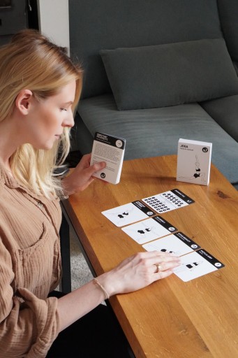 Pełny zestaw —ten kompletny zestaw zawiera 70 różnych kart ćwiczeń (łącznie 83 karty), które można łączyć i dopasowywać, aby stworzyć trening. Przygotowaliśmy 9 gotowych schematów ćwiczeń oraz możliwość utworzenia swojej własnej praktyki.