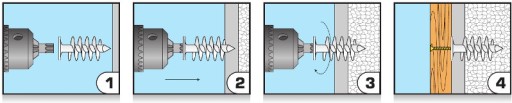 - Spiralny gwint zapewnia prawidłowe zamocowanie w płytach.
