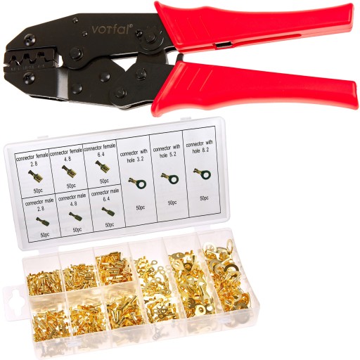 PRASKA DO KOŃCÓWEK KONEKTOROWYCH 0.5 - 6 MM + Zestaw konektorów samochodowych 450szt męskie, żeńskie, oczkowe