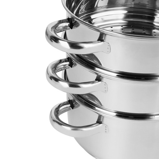 - garnek do wody, - 2 wkłady parowe, - pokrywka