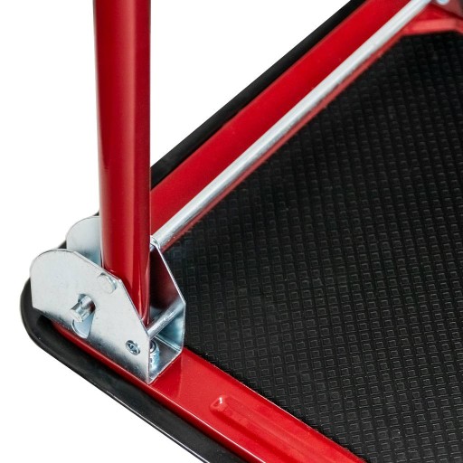 Specjalna poprzeczka znajdująca się w składanej rączce nie tylko ją usztywnia, ale także pełni funkcję podparcia przewożonego towaru.