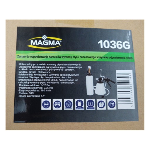 Pompa podciśnienia model 998A wraz z zestawem do odpowietrzania hamulców marki Magma.