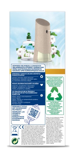 Czyściutka, świeża pościel schnie w sadzie. Wiatr porusza praniem. Jak dziecko masz ochotę bawić się w chowanego za prześcieradłami. Może to żagle okrętu, na którym wyruszysz na błękitne oceany? Albo balowe stroje, w których puścisz się w tan na balu pod chmurką w letnim ogrodzie? Odświeżacz powietrza z formułą na bazie wody Air Wick 24/7 ACTIVE FRESH Kwiat Bawełny to zapach radosnej, niewinnej świeżości i natury w Twoim domu.