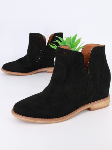 BOTKI AŻUROWE Z WYCIĘCIEM ZAMSZ CZARNE BUTY