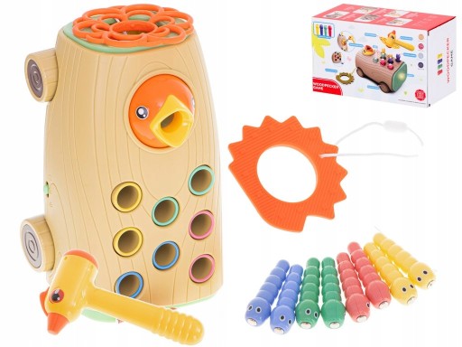 GRA MAGNETYCZNA NAKARM PTASZKA MONTESSORI LED GŁODNY DZIĘCIOŁ ZŁAP ROBACZKA