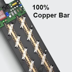 - Ochrona przeciwprzepięciowa listwy zasilającej do 1700 dżuli: 2 wskaźniki LED specjalnie zaprojektowane do ochrony odgromowej w celu ochrony przeciwprzepięciowej i ochrony uziemienia, wbudowany warystor tlenku metalu (MOV) może pochłaniać nadmiar energii, zapobiegając skokom napięcia i pośrednim uderzeniom pioruna, które wpływają na cenny sprzęt elektroniczny podczas ulewnego deszczu i uderzeń piorunów.