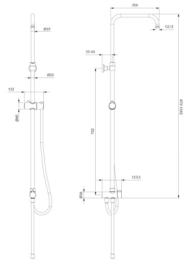 - kolumna prysznicowa z przełącznikiem i ramieniem do montażu deszczownicy