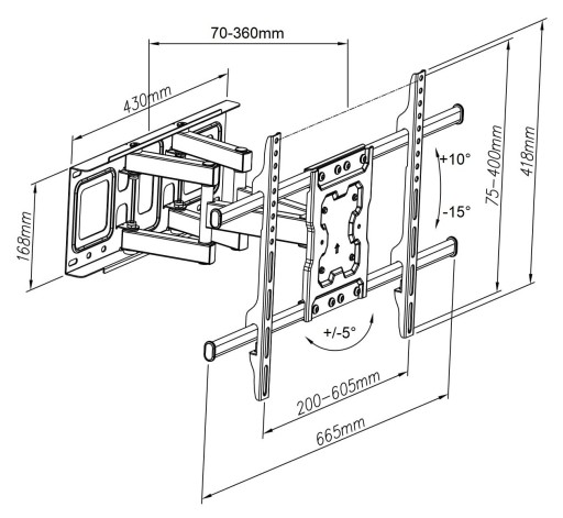 - dzięki długim podwójnym ramionom telewizor można zainstalować w dowolnej pozycji