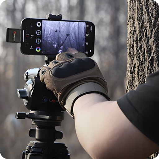 Do kamery dołączony jest specjalny uchwyt umożliwiający zamontowanie w nim telefonu, kamery termowizyjnej oraz celownika laserowego - co pozwoli na wygodnie i precyzjne pomiary.