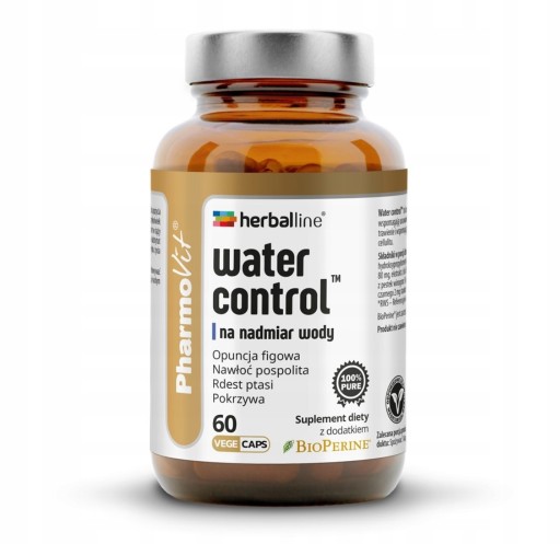 Water control™ to kompozycja 6 ekstraktów roślinnych, biotyny oraz BioPerine®. Pokrzywa i rdest ptasi wspomagają usuwanie wody z organizmu. Nawłoć wspomaga samopoczucie fizyczne. Brzoza wspiera trawienie i wspomaga proces detoksykacji. Winorośl wspiera kontrole masy ciała oraz może pomóc w redukcji cellulitu.