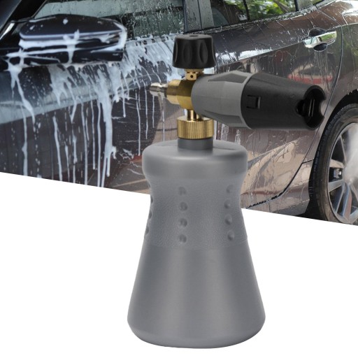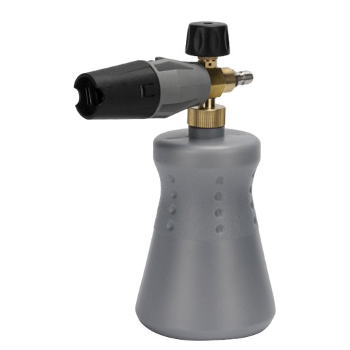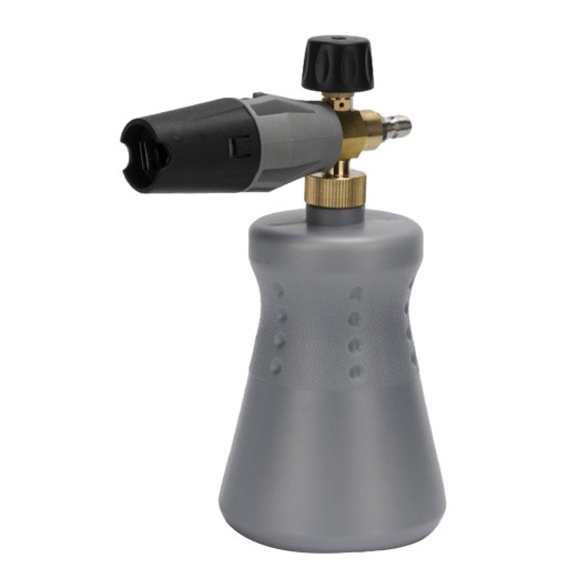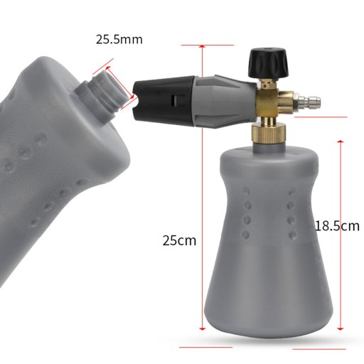 [Łatwy w użyciu] Napełnij butelkę ciepłą wodą z mydłem, aby uzyskać gęstą pianę, podłącz szybkozłączkę do myjki wysokociśnieniowej i przekręć górne pokrętło, aby ustawić żądany poziom piany