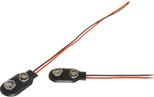 GNIAZDO ZASILANIA BATERIA 9V KOLOR -CZARNY DO BATERII I AKUMULATORKÓW TYPU 6F22 WYPROWADZONE PRZEWODY CZARNY+CZERWONY DŁUGOŚĆ PRZEWODÓW 14cm