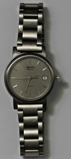 Oferuję ZEGAREK DAMSKI ADRIATICA TITANIUM QUARTZ -3017.785.1 ze SPRAWNYM DATOWNIKIEM, z BRANSOLETKĄ, NA DOBRYM CHODZIE, ROZMIAR 16,3 cm w bardzo ładnym stanie widocznym na załączonych zdjęciach. Mechanizm kwarcowy wysokiej jakości, ukazany na zdjęciach, napędzany energią z baterii, bateria nowa. Koperta zegarka i bransoletka wykonana z tytanu. Szkiełko szafirowe, nie porysowane. Tarcza czysta, w pięknym stanie zachowania. Wskazówki oryginalne, także w pięknym stanie zachowania. Zegarek sprawny, na dobrym chodzie. Widoczne minimalne ślady użytkowania. Zapięcie bransoletki sprawne, zamyka się i otwiera płynnie. Zegarek w pięknym stanie zachowania bez uszkodzeń mechanicznych typu wgniecenia i inne. Rozmiar bransoletki- 16,3 cm. Średnica koperty zegarka z koronką ok. 23,5 mm, grubość ok. 6,6 mm. szerokość bransoletki ok. 13 mm. Polecam.