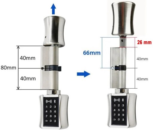 Od strony wewnętrznej mozliwość regulacji odstępu gałki od wkładki w zakresie: 0-26 mm