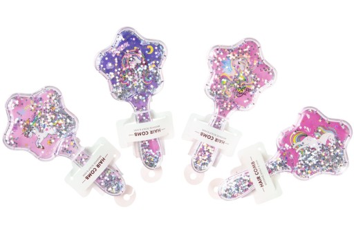Wygodna i praktyczna plastikowa szczotka do włosów, w pastelowych kolorach i grafiką jednorożców. Jej wielkość pozwala na spokojne umieszczenie jej w damskiej torebce. Super szczotka zarówno dla dorosłej kobiety kochającej jednorożce, jak i małej dziewczynki. Dostępne różne kolory, wysyłamy mix.