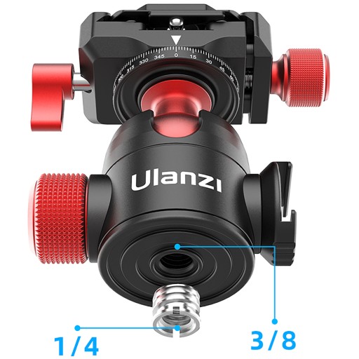 Ulanzi U-70 to głowica kulowa z dodatkową podziałką w poziomej płaszczyźnie regulacji, dzięki której panoramowanie może być bardzo precyzyjne. Regulacja panoramy ma oddzielną wygodną blokadę.
