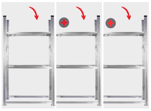 - możliwość łatwej rozbudowy regału o kolejne szeregi np. z półkami, zmiany jego pozycji lub demontażu