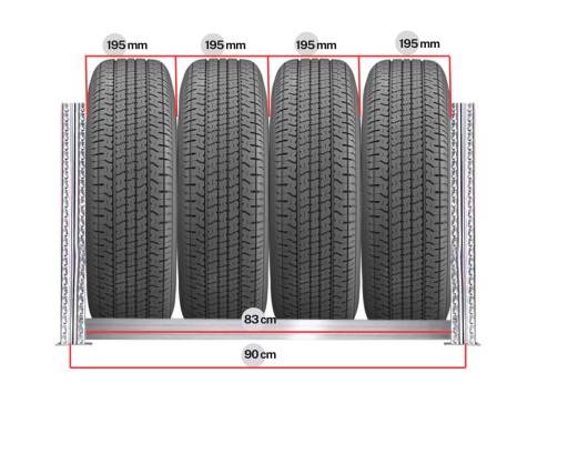 Maksymalna szerokość opon / kół mieszczących się na jednym poziomie wynosi 195 mm.