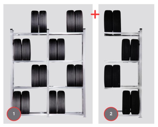 Profesjonalny regał do przechowywania opon lub kół do wykorzystania w warsztatach samochodowych, serwisach, magazynach oponiarskich, hotelach oraz wszelkich magazynach składowania opon.